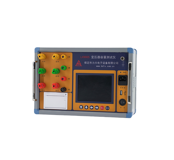 ? 容量的测量:仪器内置可充电锂电池,本身可输出三相正弦波逆变电源,输出电压自动调节,具有软启、软停功能,无需任何外部电源可实现配电变压器容量的测量和型号的判断,同时显示变压器阻抗电压和折算到额定温度、额定电流下的负载损耗。